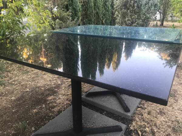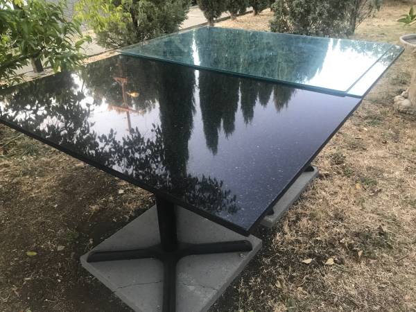 Rarely used Black Granite Table with glass protective top 30" W x 47" L x 30" H Cast iron base Restaurant tables - Patio tables - Dining Breakfast tables - Multi- functional tables Indoor / Outdoor...