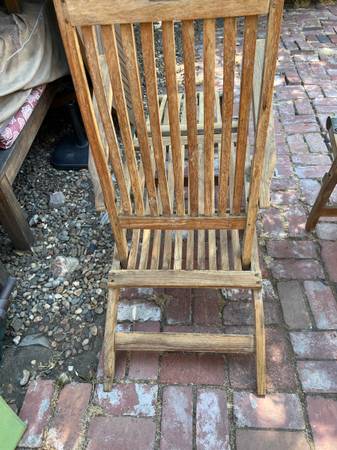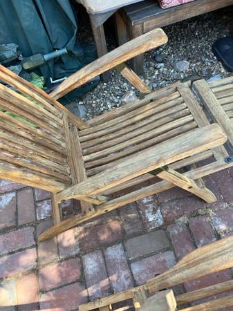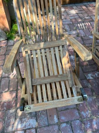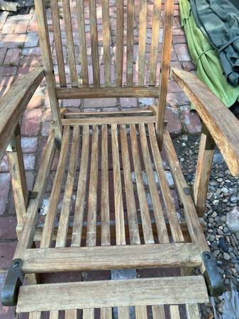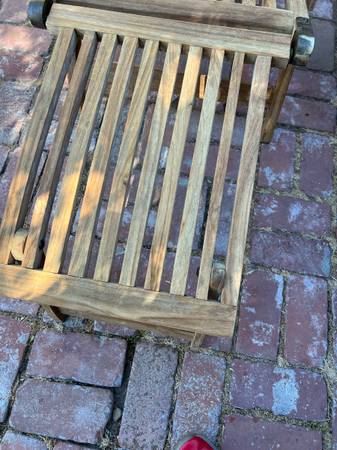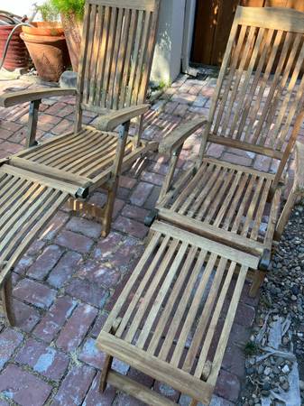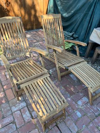 Set Of 2 Ventana Brand Teak Steamer Chairs With Footrests Located in concord Recently cleaned, sanded and oiled Heavy and sturdy. No damages whatsoever 23” wide $450 or best offer for the two Free...