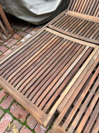Smith & Hawken Dual Teak Chaise Lounge Chairs and lime green smith and hawken matching cushions Located in concord Recently cleaned and teak oiled No damages whatsoever Teak wood is heavy and...