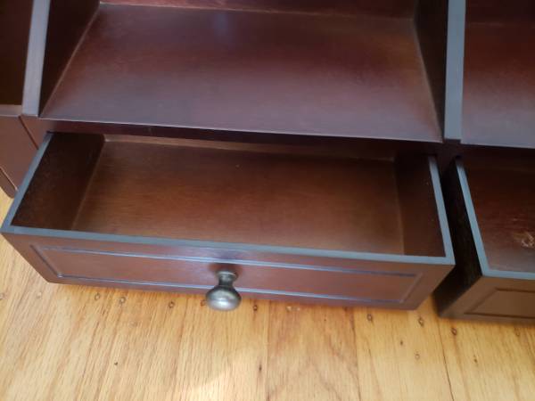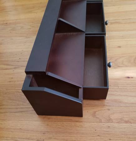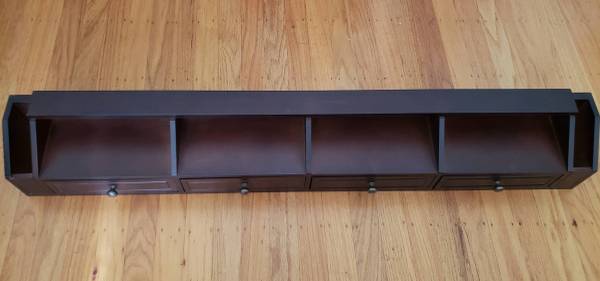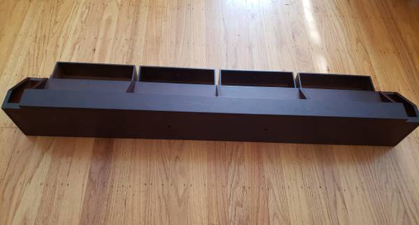 40.5" W x 5.75" H x 5.5" D. Four draws: 4.5" W x 8.5" D. Four top compartments: 4.75" W x 8.75" D plus 2 Side compartments.