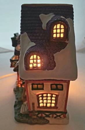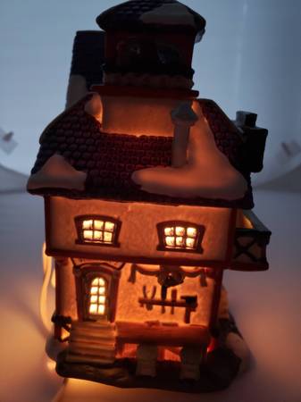 * A Lighted porcelain house with an on/off switch and a 6-foot cord