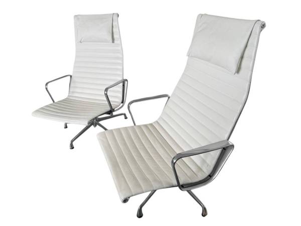 A timeless design from 1958, the Eames Aluminum Group Lounge Chair epitomizes contemporary comfort and modern living. This pair features the signature high back, relaxed pitch, padded headrest, and balancing tilt with 360° swivel- making them ideal for both office and home environments.