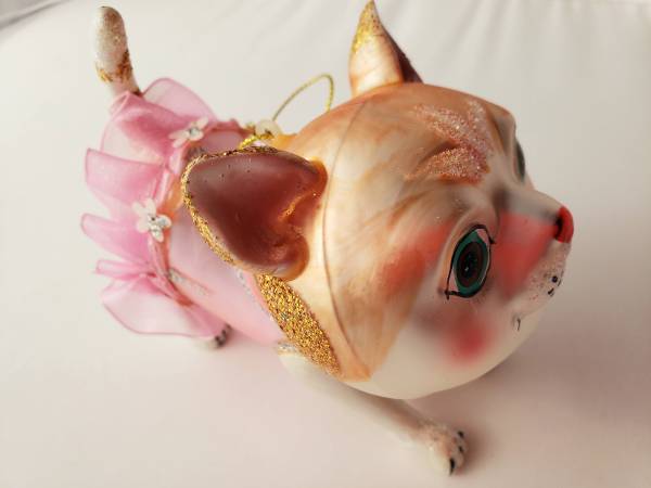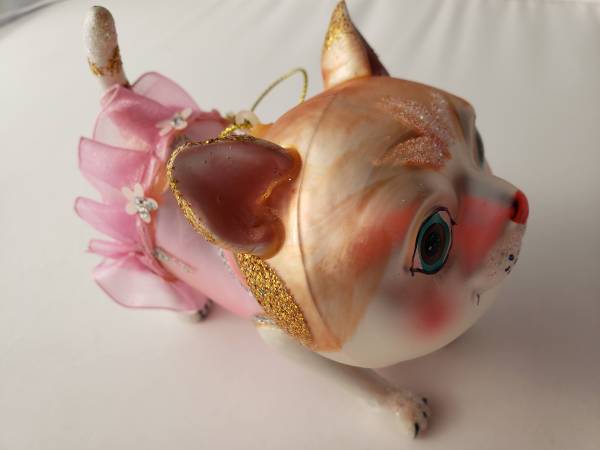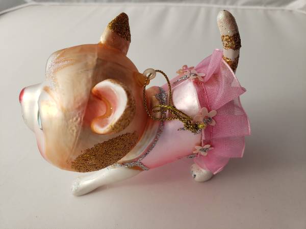 New Kitty Cat Glitter Glass Blown Holiday Hanging Ornament Christmas Tree from Katherine’s Collection - Decorative, Embellished, Hand Painted, Hanging with Glitter. Kitty is about 5"- 6" long.