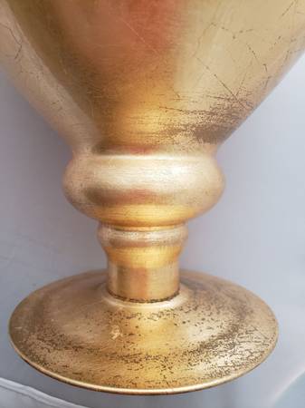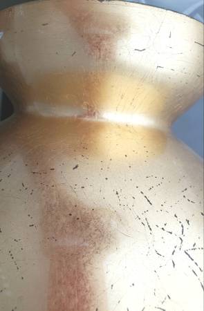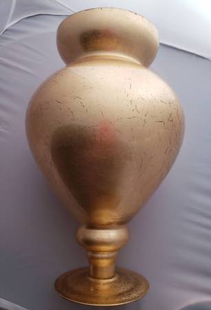 New 15" High x 8.5" D Large mouth-blown vase hand gilded using gold leaves.