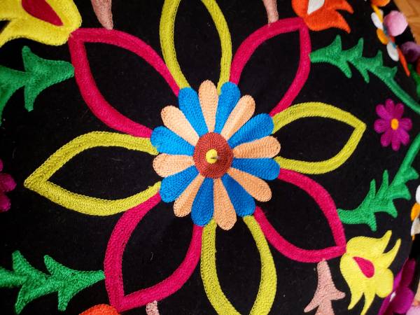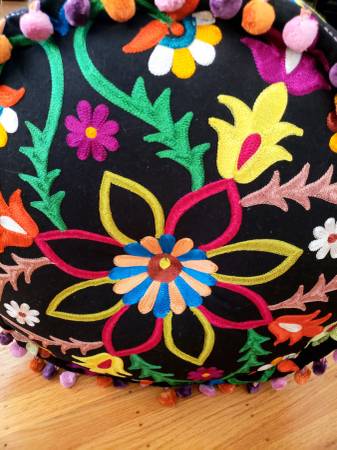 New colorful floor cushion with tags. * Size: Diameter 24 Inches, 8 inch. High. * Color: Multicolored * Material: Cotton * Soft and comfortable skillfully embroidered floor cushion with colorful...