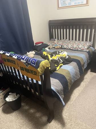All pieces to convert from crib to toddler bed, day bed and full bed included. Change table components included with dresser. Full mattress available as desired (maintained in plastic cover). No crib mattress.