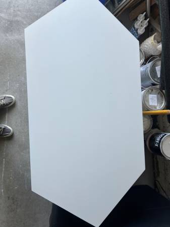 Very good condition TV Stand and Cabinet. 46" long, 22 " deep, 24" tall. Pictures show front view, side view (there are 2 shelved on each side) and a view of the top. Irregular hectagon shape.