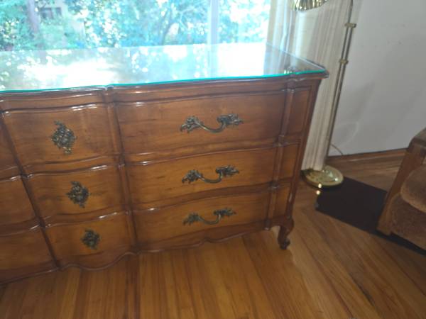 Antique Glass-topped Dresser AMAZING condition 9 drawers approximately 68" wide, 21" Deep 35.5" tall If you are interested in this set, please respond with your PHONE NUMBER so we can set up a time...