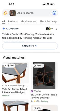 (See picture with Google match for the tables. We originally purchased them at Viking Trader in Berkeley.)