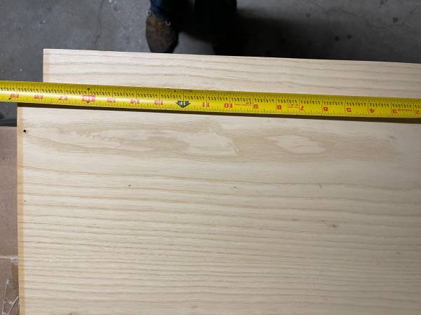 There are 4 identical shelves that measure 17.5 x 19 minus a notch in one corner about 1 x 1.5" The notch is part of the original design of the shelf (it was not cut out later). See the photos taken with a tape measure that illustrates these dimensions.