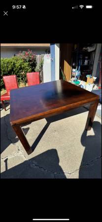 Square dining table with 5 rust colored vinyl chairs. 54x54” with removable legs. Gently loved but still lots of life. $175 OBO Cash or Venmo only and pickup in Fairfield.