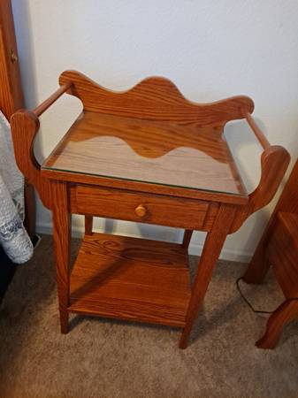 Vintage Solid Oak Wash Stand Table with a Separate Plate Glass Moisture Barrier (spilled drinks etc.). Not Common. From the Tom Seely Collection of West Virginia. Like New Condition. 35"H X 25"W X...