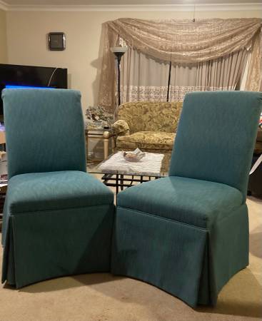 Teal colored Parsons Dinning chairs in great condition Set of 2 high quality Bassett Furniture Skirted Dining Chairs $100 each. This is a set and both chairs are sold together For faster response,...