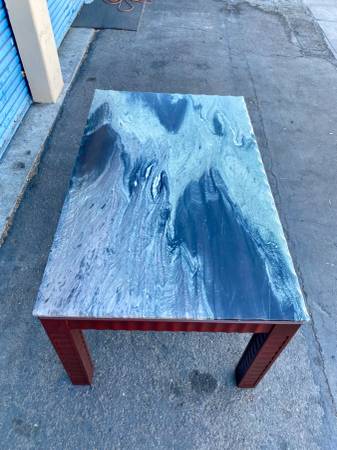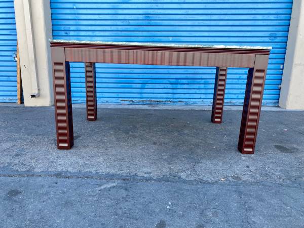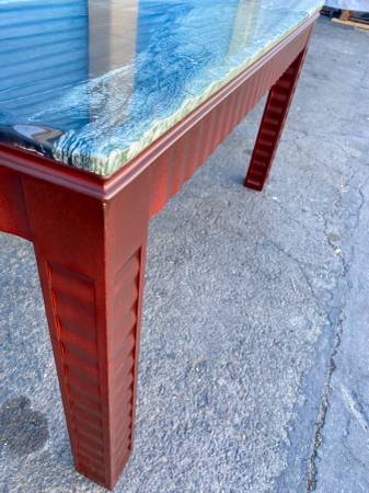 Condition: 9/10; Used/Resored; i received this table in fair condition. Restoration included repairs made to one leg, two coats of stain and polyurethane top coats and one small chip, filled in on the top.its in near new condition. I did subtract (-1) for a few superficial scratches to the top, but these are easily hid with a little polish.