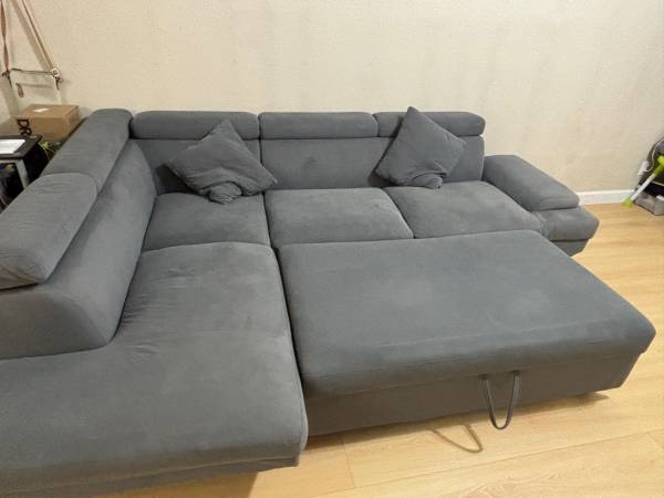 The sectional sofa with a comfortable cushioned back and firm padding. has a longer chaise.