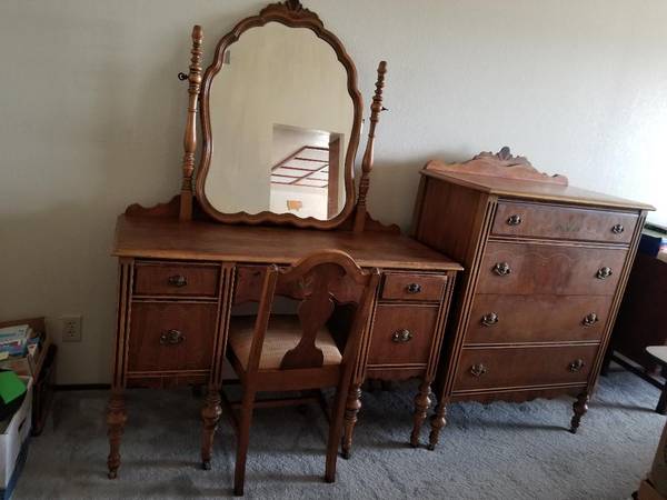 Vintage dresser and vanity with chair set, $495