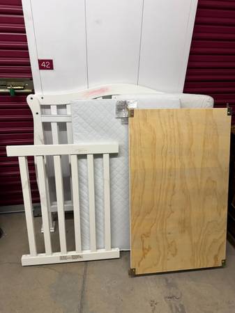 Includes a crib mattress, as shown in photos. *hardware not included* Project for a handy person