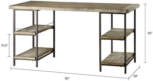 Incorporate an industrial vibe to your home with this metal frame accent desk. Designed with hardwood and metal, this sturdy desk offers side shelving for extra storage and a large work space so you can spread out your work and still have room for a computer or lamp. Assembly required.