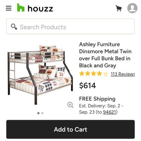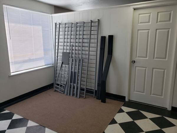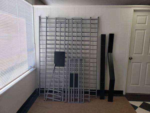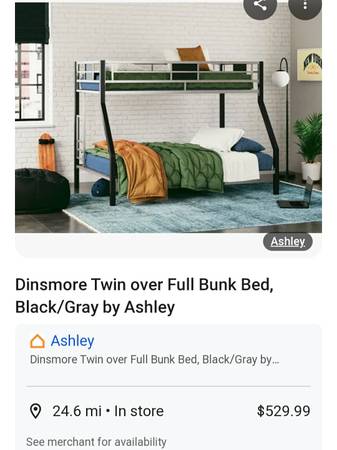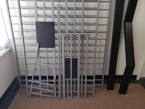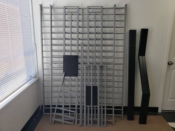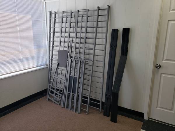 Only $150, about $600 new (please see all photos). Black and gray bunk bed frames only, no mattresses. Twin size over Full bunksbeds, no box spring foundation support required, all you need is the...