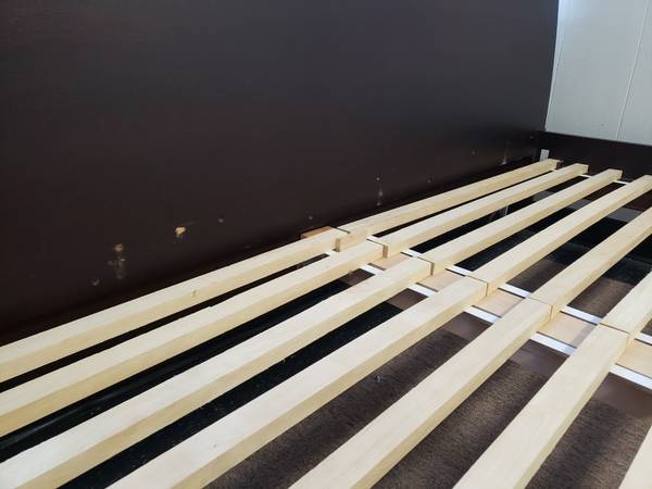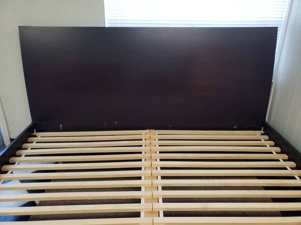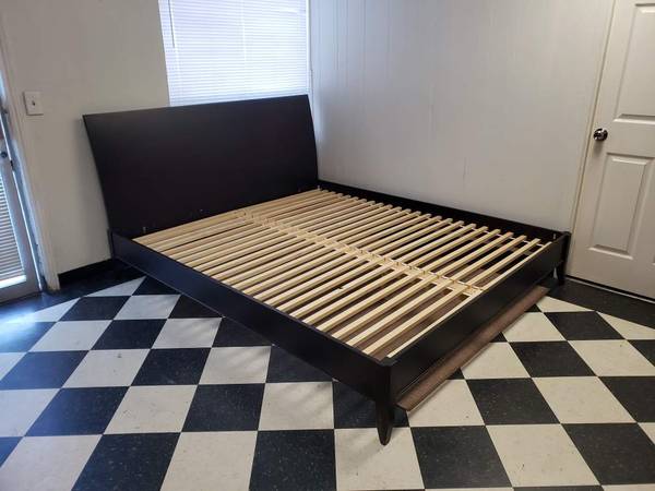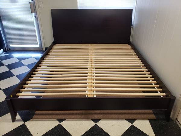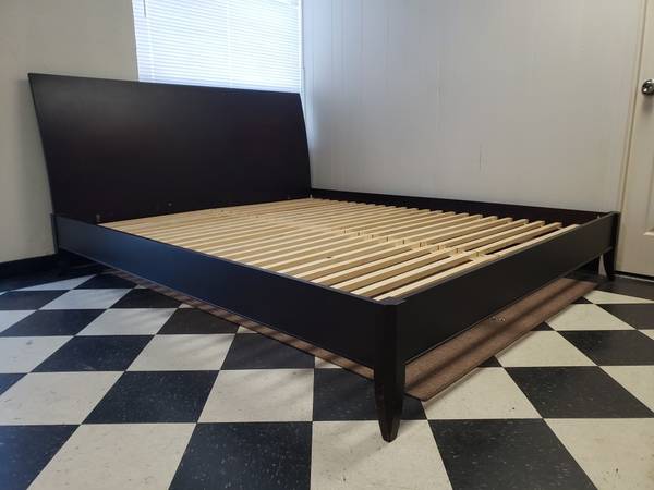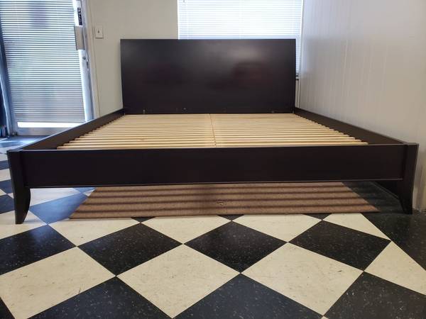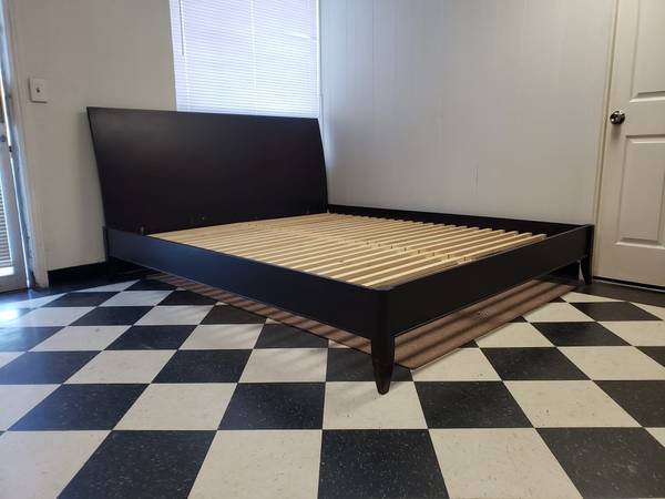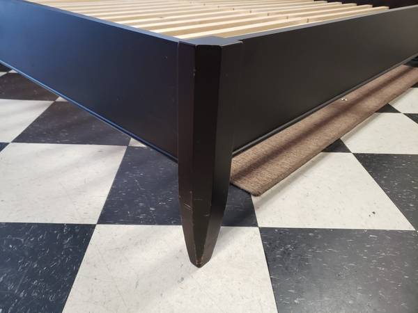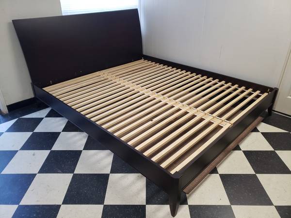 This quality calking Baronet brand platform frame consists of a wooden headboard, foot board, side rails, middle support with center legs supports and wooden slats cross bars foundations.
