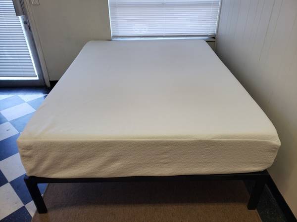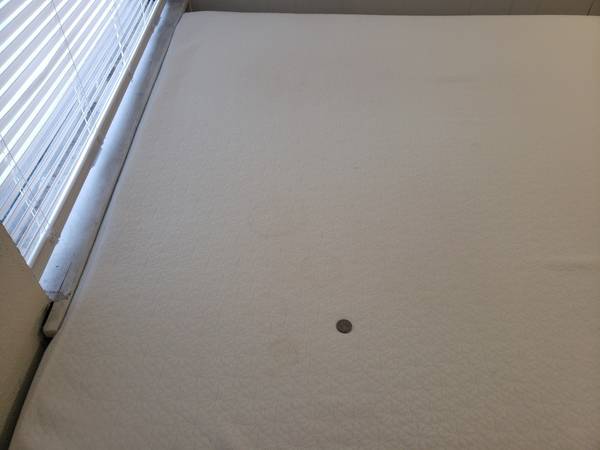 Memory foam mattress is super comfortable with good support and a touch of softness, it has a few small light soda stains (please see all photos), a nice sheet should cover those cosmetic imperfections or simply remove the removable cover to wash.