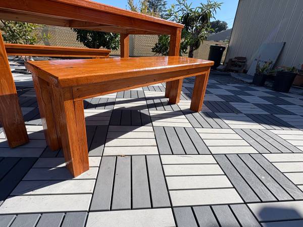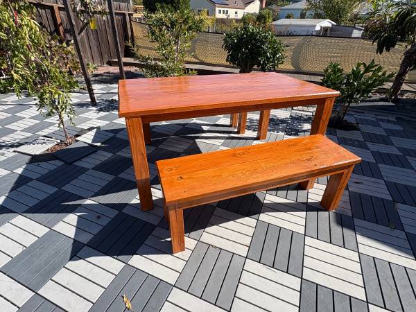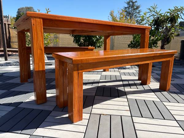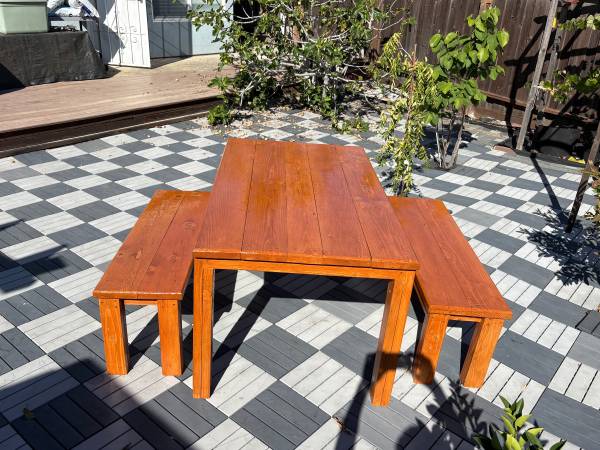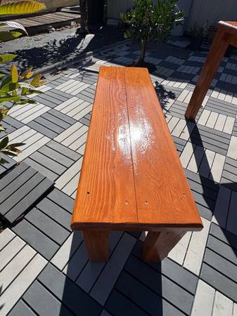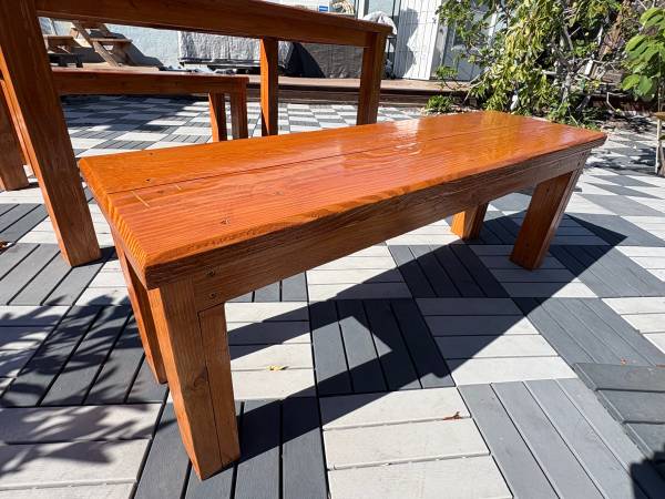 This set includes one table and two benches. *One set has just completed and is available to deliver anytime. Handcrafted on order. Routered, nail-screwed, sanded multiples times, and sealed with...
