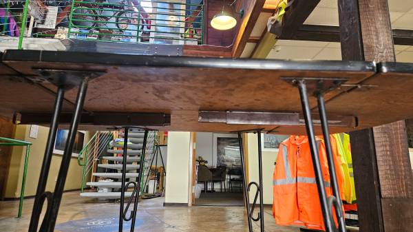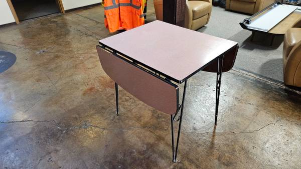 Vintage 1950's Formica Kitchen Table with folding leaf's Great condition and has been stored indoors all its life. all hardware is in great usable condition. Steal leg and frames. OBO