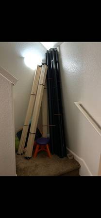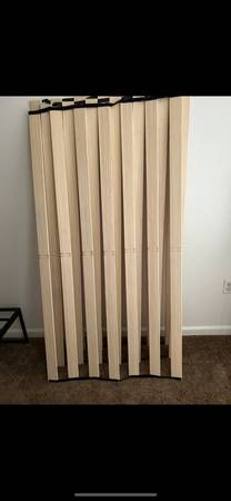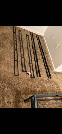 -Metal -4 sides -1 middle -2 sets of wood slats w/ Velcro -screws -4in tall -fabric cover Very Lightly used Can be used on floor Can be used on another bed frame for height Will attach pics. Brand...