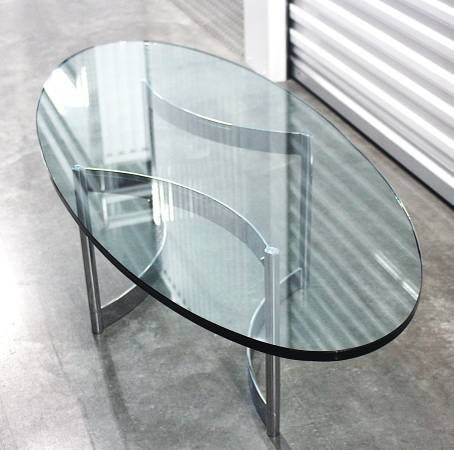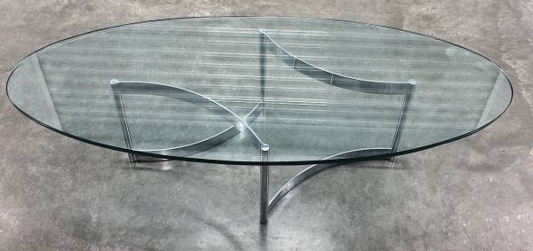 AUTHENTIC Paul Legeard Chrome & Glass Oval Surfboard Coffee Table
