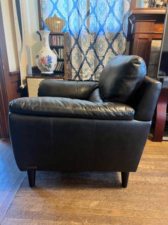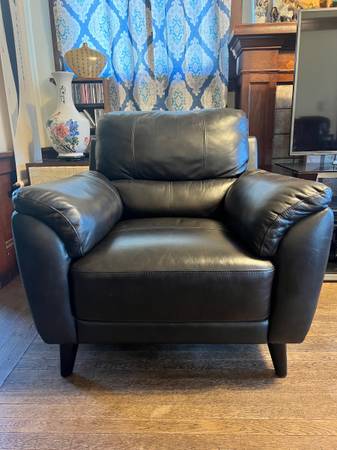 Abbyson black leather armchair. Lightly used. No scratches.