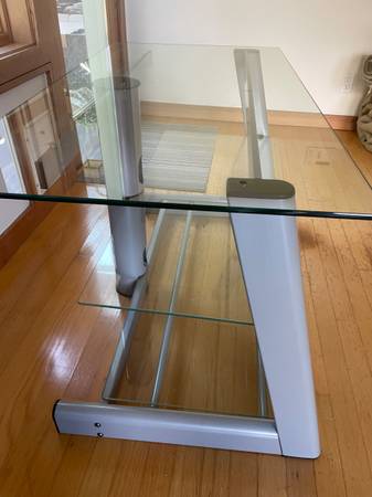Multipurpose media console, game console, TV stand and/or artistic displays. Has a very airy and open look. Glass and metal show no scratches or blemishes.