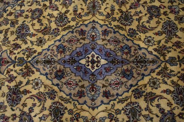Made of vegetable dyes, pure wool on cotton, tightly woven 300 KPSI. Size: 6.5 x 9x6 FT