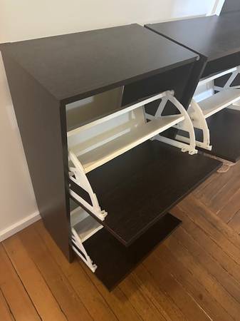 2 Ikea Shoe Cabinets in really good condition, lightly used. No dents or scratches. Fits 16 pairs of shoes or more. I believe it's the espresso version of this:...