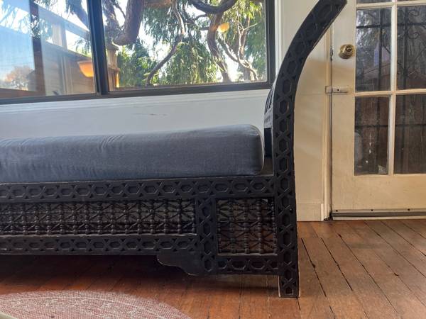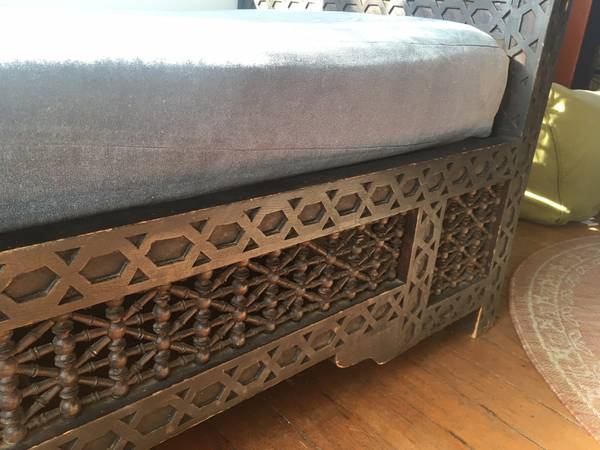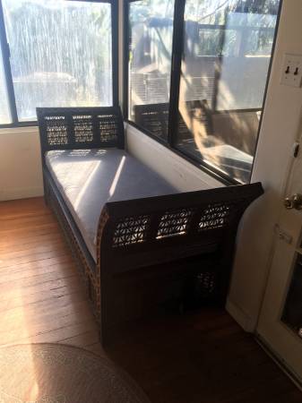 Love this day bed and haven't seen anything like it elsewhere. Unfortunately, it won't fit down the hallway to its intended location. Very sold/sturdy piece, with all carving details intact. Areas...