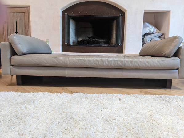 Pierson Day Bed in Urbino Stone with wood sled base. Originally $5000