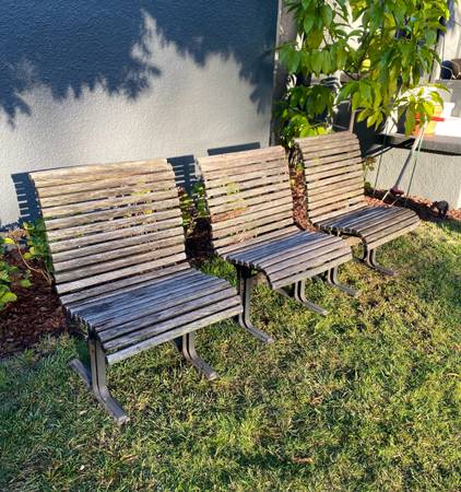 Selling a Set of 3 Vintage 50s Mid Century Modern Danish Style Falcon Wooden Slatted Cast Iron Benches for $600obo or $225obo each. Dimensions - 24 inches W × 25 inches D x 34.5 inches H. Goes well with dwr, room and board, restoration hardware, crate and barrel, cb2, west elm, patio, garden, eames, knoll, Herman miller, George Nelson, Vitra, cassina, rare
