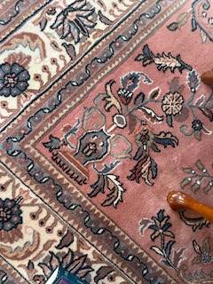 Beautiful Persian rug featuring stylized traditional patterns in soft colors.