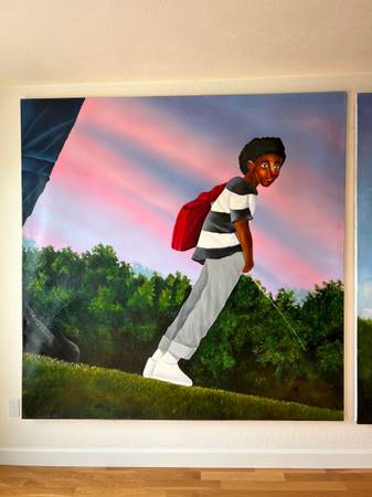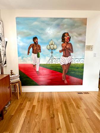Original painting, Emmanuel Kazadi,Congolese artist inspired by cartoons and renaissance old masters 6.5 ft.² $4000 each