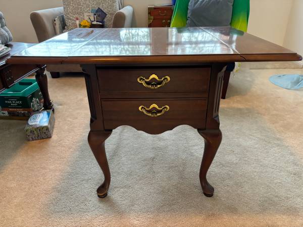 Antique Thomasville Furniture Collector's Cherry Collection 35" Drop-Leaf Pembroke Accent End Table 10131-220 priced to sell at $250 in Summerlin. Solid cherry wood construction with beautiful detailing such as sturdy leaf supports, and routing on all edges. This item retails for $750 online: https://www.chairish.com/product/13246372/thomasville-furniture-collectors-cherry-collection-35-drop-leaf-pembroke-accent-end-table-10131-220