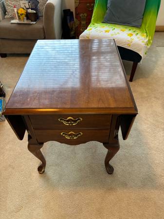 End table has some minor wear and tear as demonstrated in pictures, but is otherwise in excellent shape.