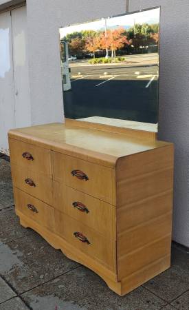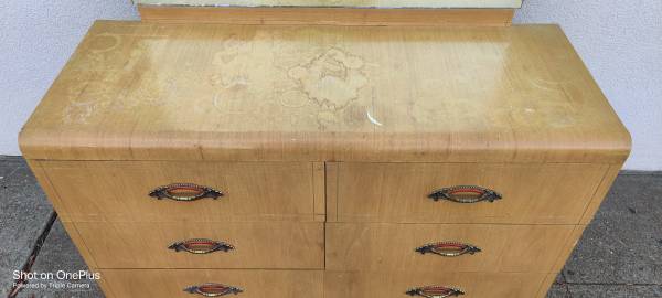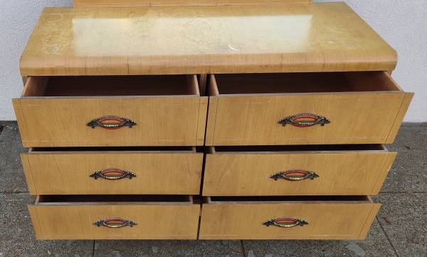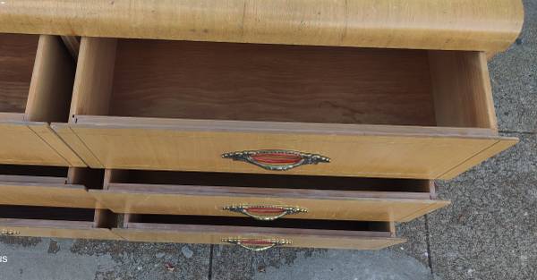 Dresser Art Deco Vintage Solid Wood Waterfall Bureau Chest of 6 Drawers Solid Light Weight Wood Flawless Original Drawer Pulls Wood Guides on Wood Runners All Drawers Smooth & Functional Needs...