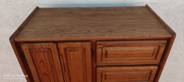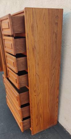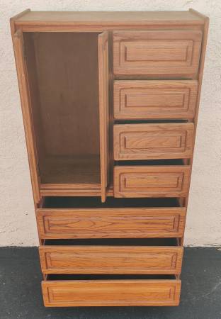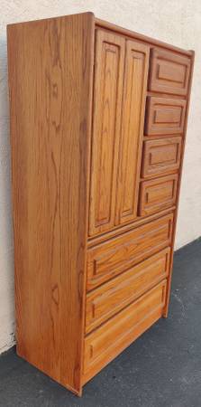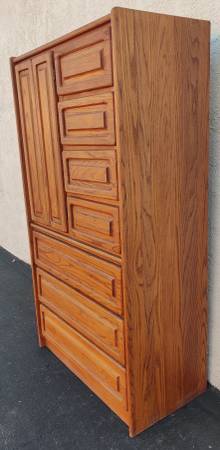 Dresser Bureau Cabinet High Boy Chest of 7 Drawers Gentlemen's Armoire Very Heavy Mostly Solid Oak Wood All Drawers Functional Metal Guides on Metal Runners Signs of use with nicks and scratches....