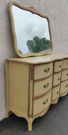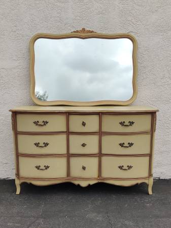 Dresser French Provisional Bureau Mirror Chest of 9 Drawers Sturdy Mostly Solid Wood All Drawers Smooth & Functional Dovetail Drawers Needs restoration and paint. 58" wide 20" deep 34.5" height...