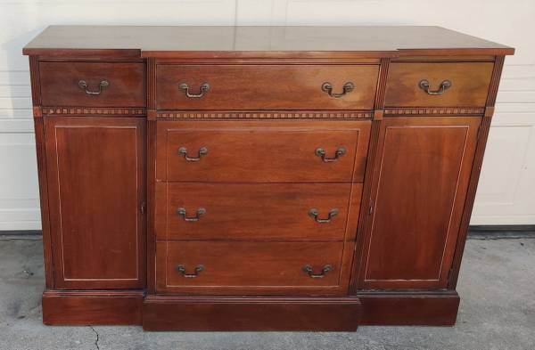 Sideboard Buffet Hutch Bureau Cabinet Dresser Sturdy Mostly Solid Wood All Drawers Smooth & Functional Dovetail Drawers Needs refinishing or paint 52" wide 19.5" deep 35" tall