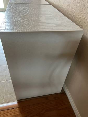 I have two used white leather side table. Great condition small stain and chips on table please see carefully all the pictures.