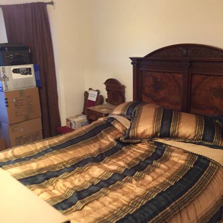 We upgraded to a king size bed and no longer need our vintage wooden headboard. There is beautiful carving around the edges and a small crack on the lower left side. From a smoke and vape free home,...