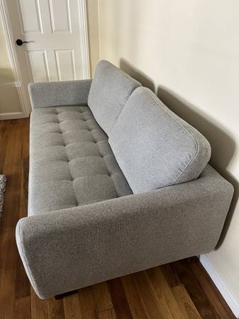 This couch is in excellent condition: purchased in September 2025, no stains or spills, no pets/fragrances/smoking. Selling because I wanted something with a little more length (but not for the cost of the sectional), otherwise it is very comfortable. I included the stock photos so you can see what it might look like among other furnishings.