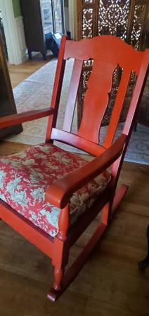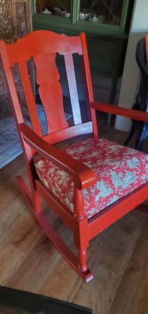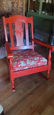 Red Rocker Chair wider seat, recently reupholstered Sturdy 36 inches tall X 26 inches wide X 30 inches deep(includes rocker base) Located in Pleasanton