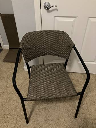 This plastic chair is sturdy and has remained indoors since purchased, so it's clean. Cash, Venmo, or Zelle accepted.