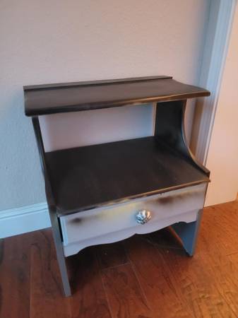 Lots of stuff in the free to $20 range here. 1/ Cute blue and white dresser 2/ Leather chair 3/ Green and black end table (rustic) 4/ Book shelf 5/ Glass Coffee Table 6/ Glass end table 7/ Beautiful wood table/entertainment from India 8/ Ergonomic Desk that adjusts for sitting and standing (I will need some $ for this one, $500 retail) 8/ And more